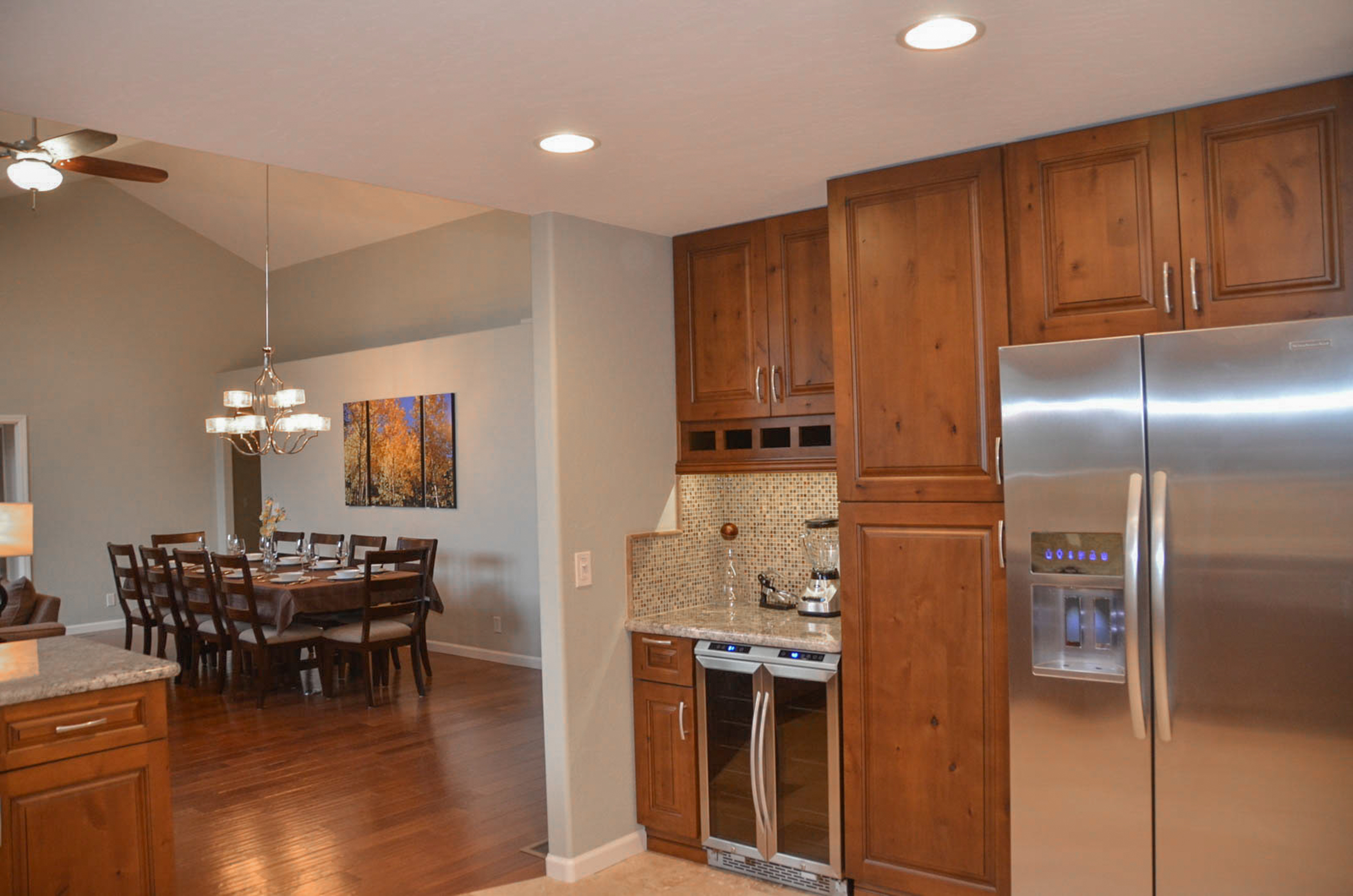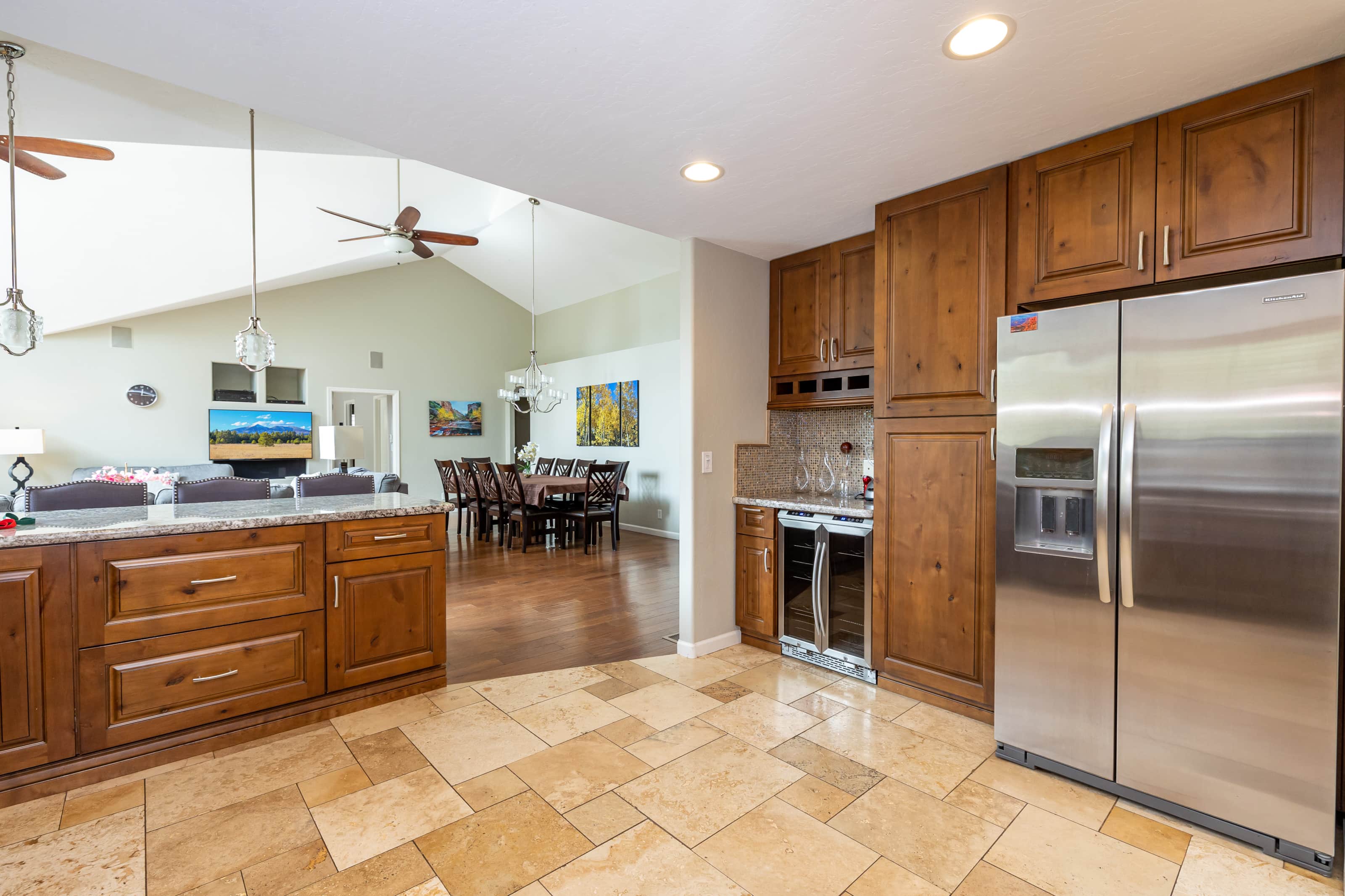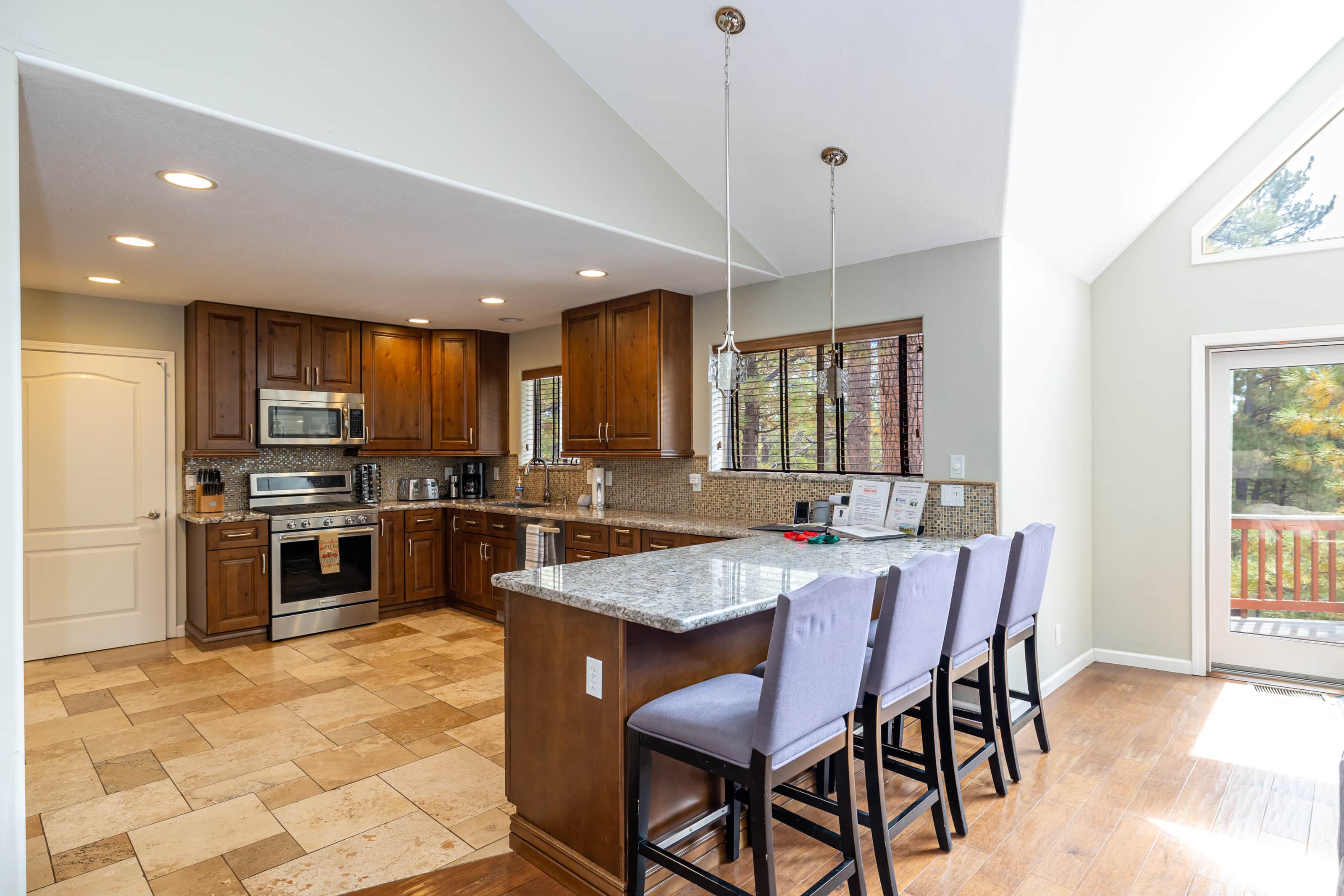 • Dining: Seating for 8 with 4 additional bar stools at the breakfast bar