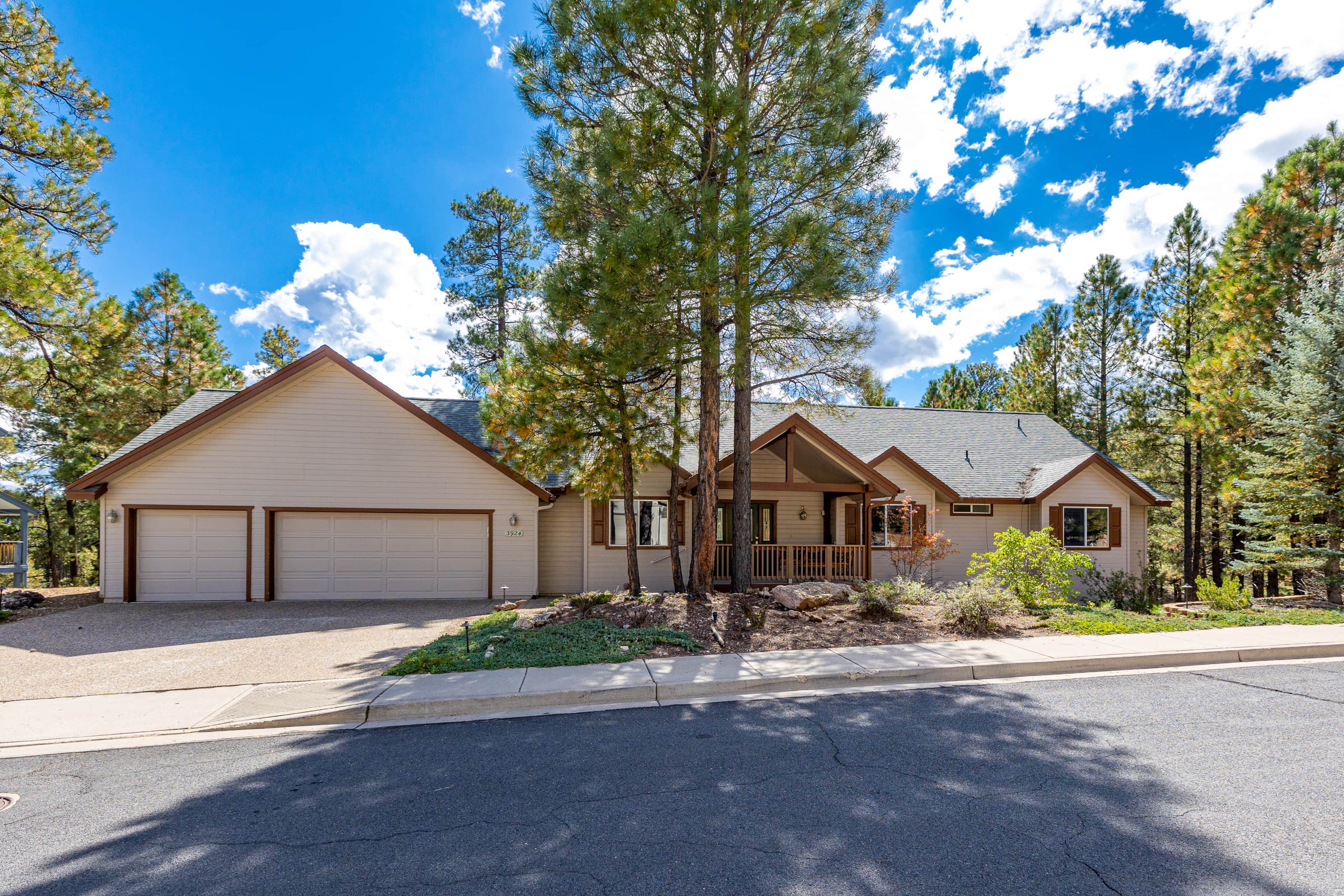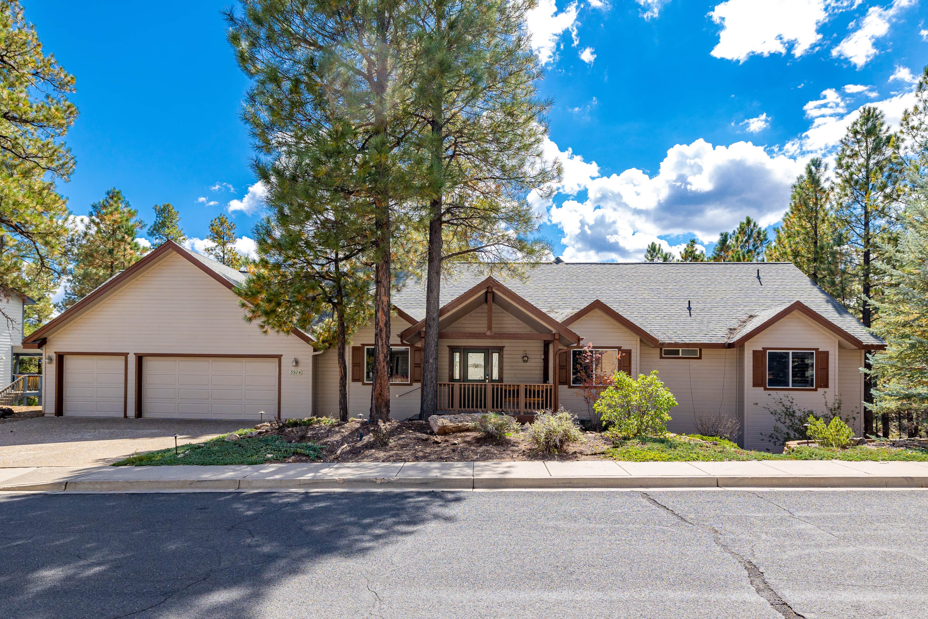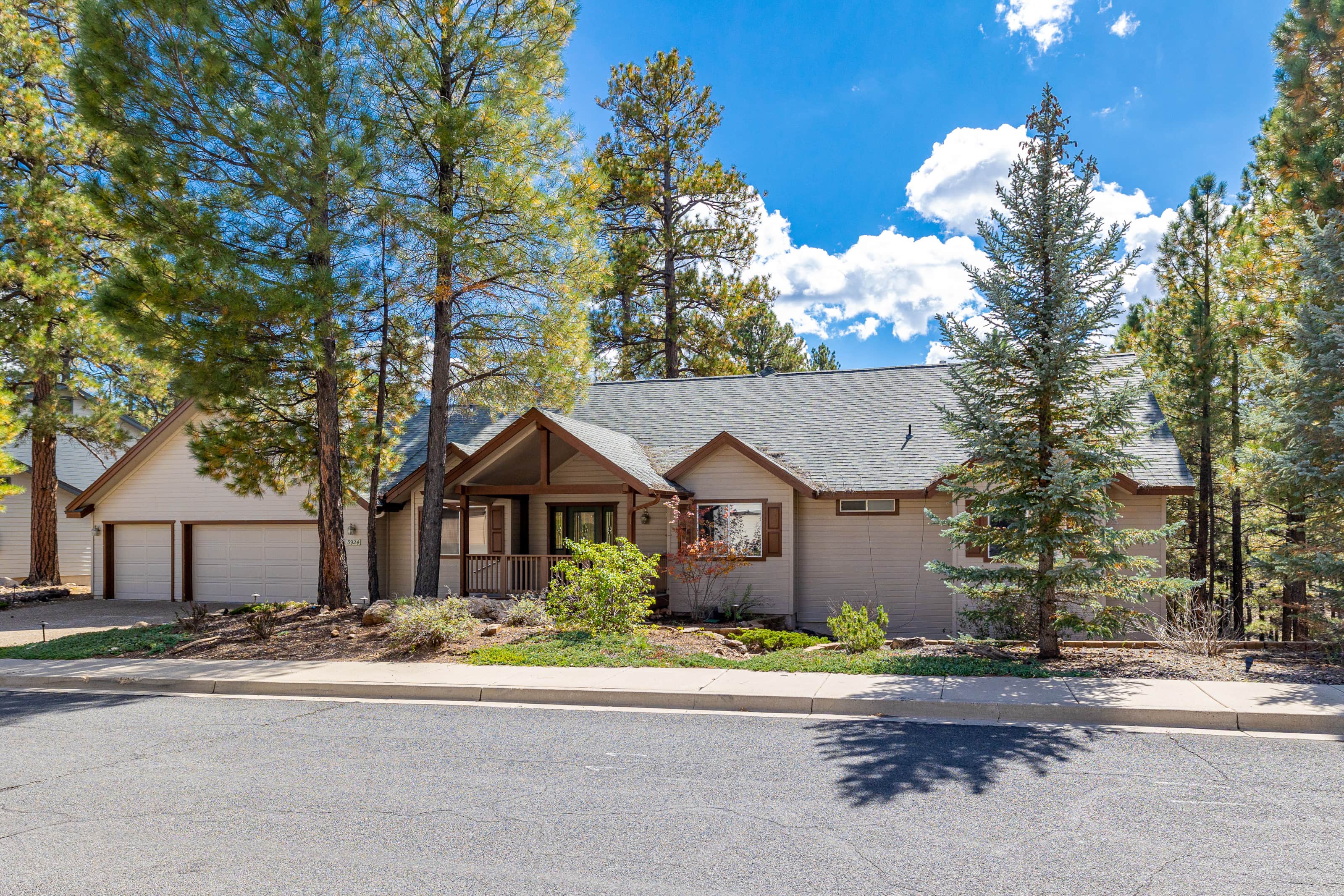 This renovated single level home features a large chef's kitchen, 4 bedrooms and 3 full bathrooms and a hot tub on the large rear deck! The rear deck is elevated above the pine forest and the Flagstaff Urban Trail System with great trails! Other amenities include central AC. cable TV, single level home with 2 master suites.