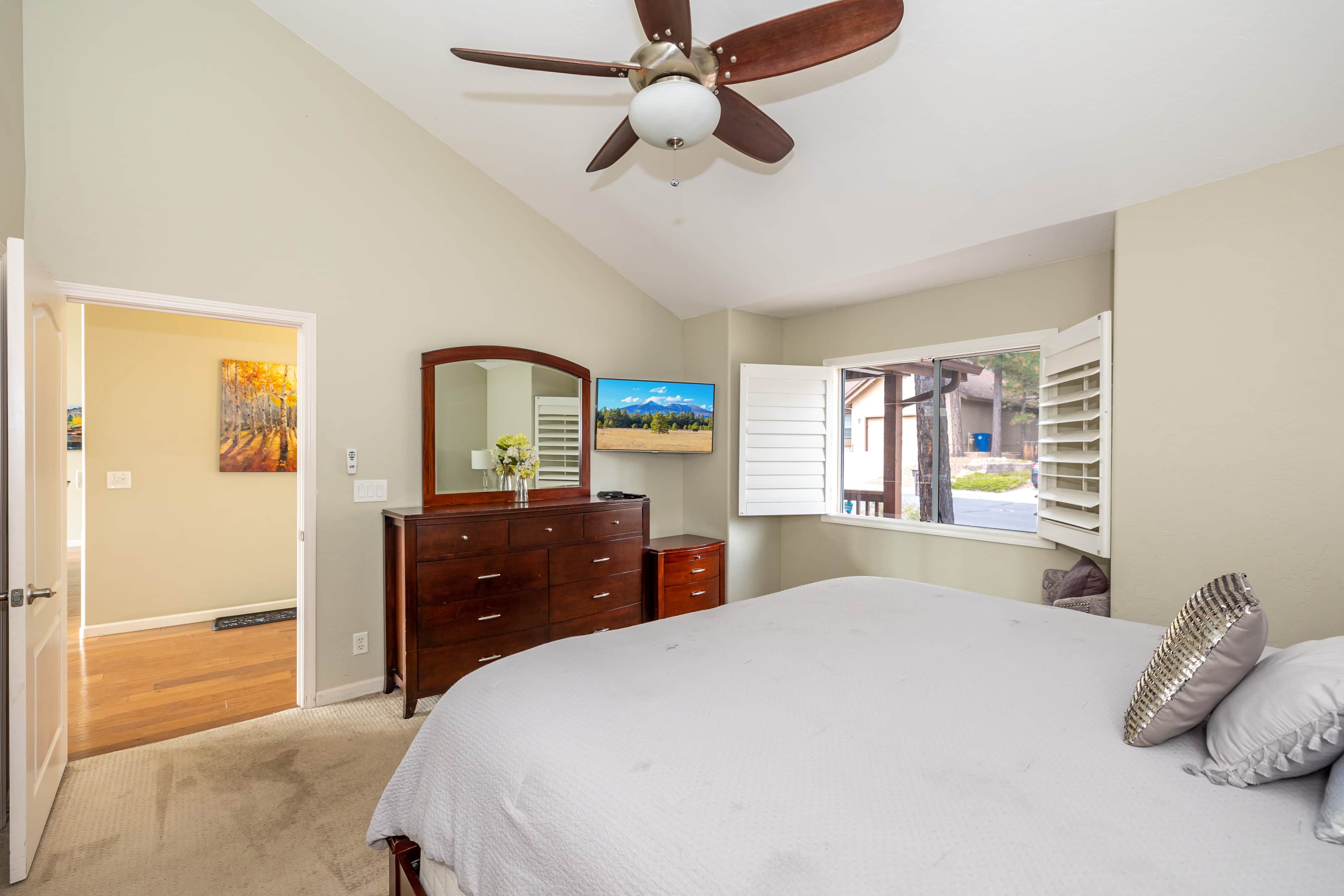 The entire house is accessible and available. There is also direct access to the Flagstaff Urban Trail System (FUTS) which runs through the forest area directly behind the home. This trail connects with over 50 miles of hiking and biking trails throughout the city. You can hear South towards Fort Tuthill Park or take it North up towards Northern Arizona University.