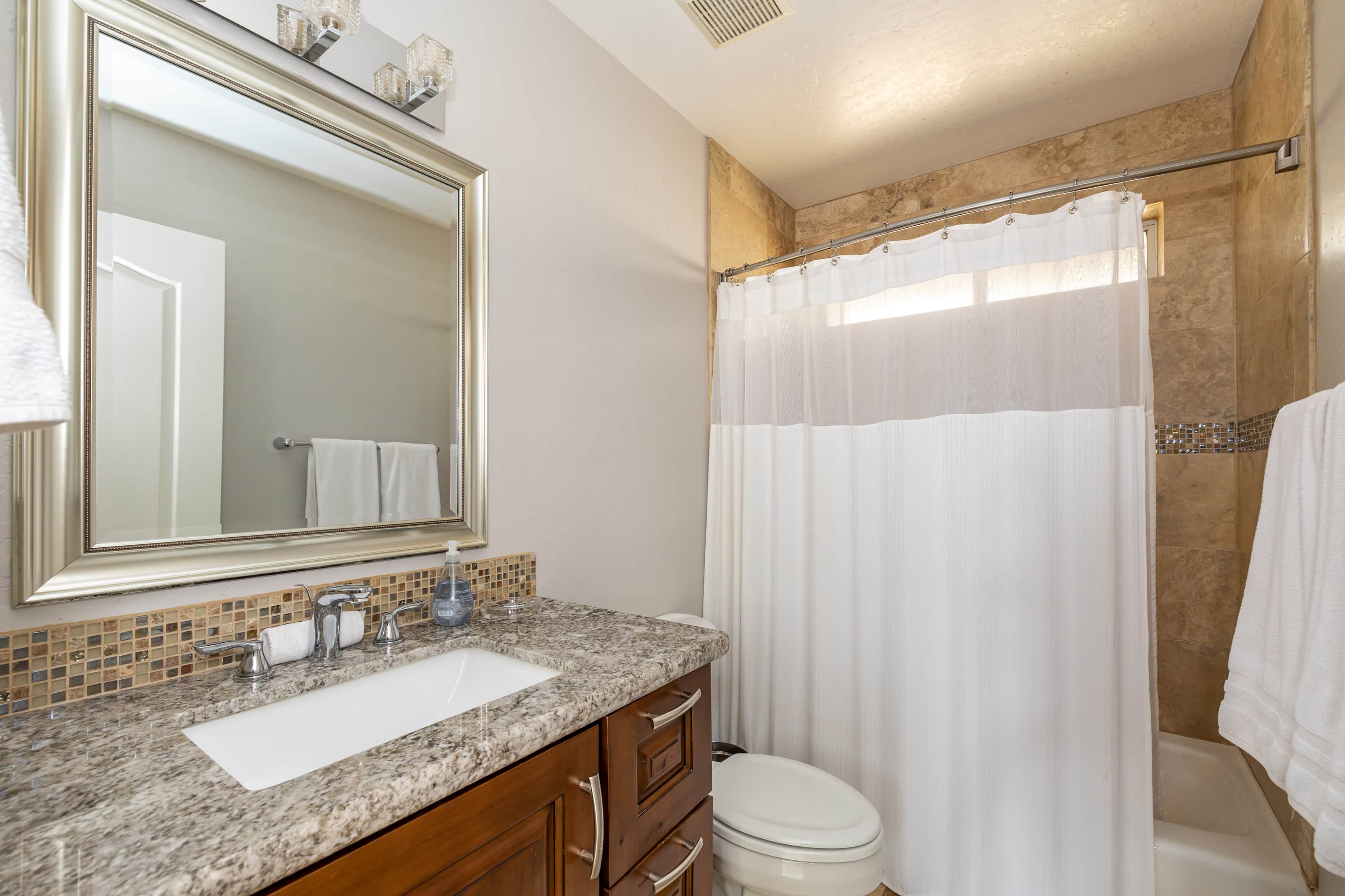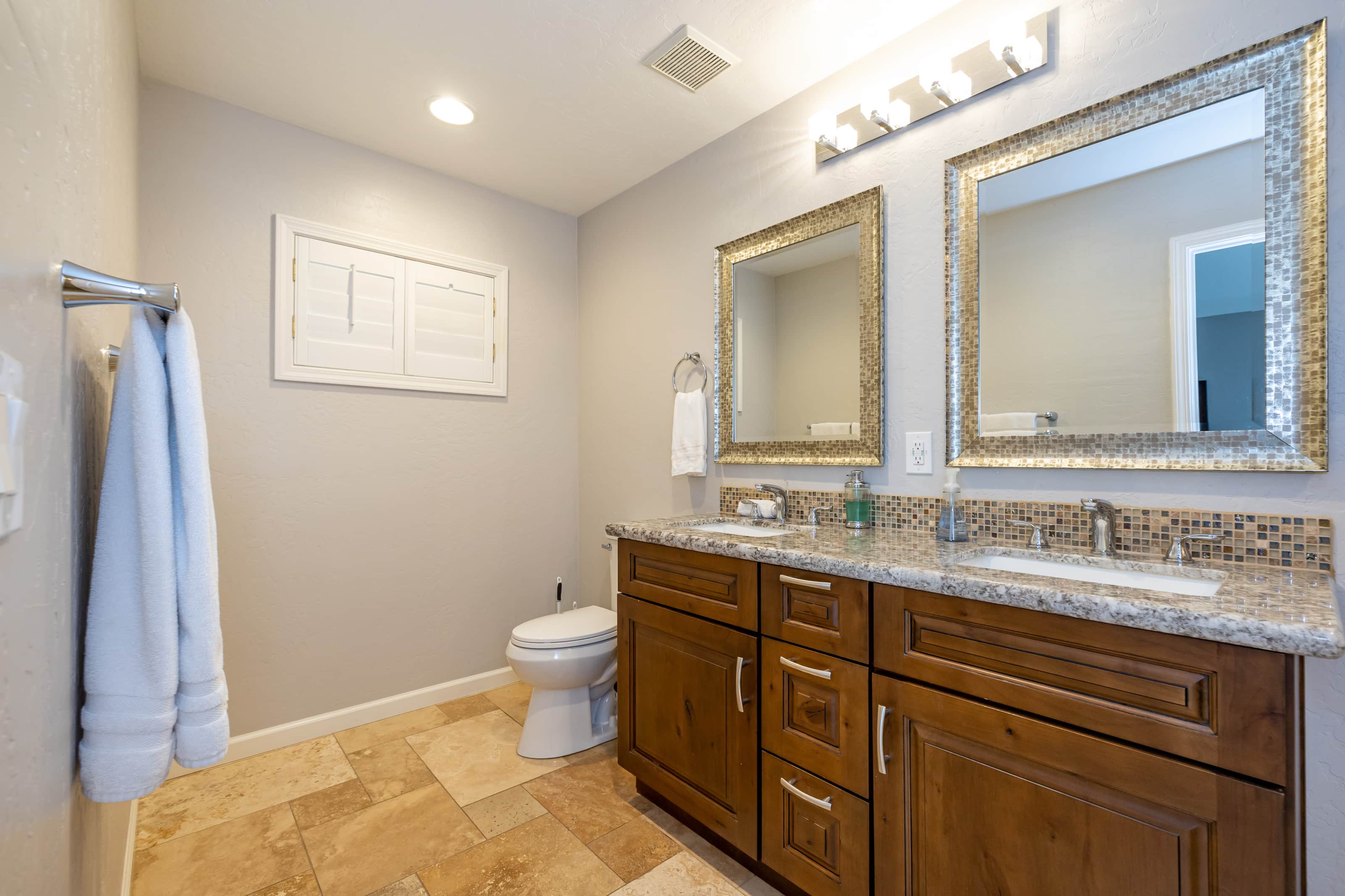 • Master Bathroom #1: toilet, shower, dual sinks