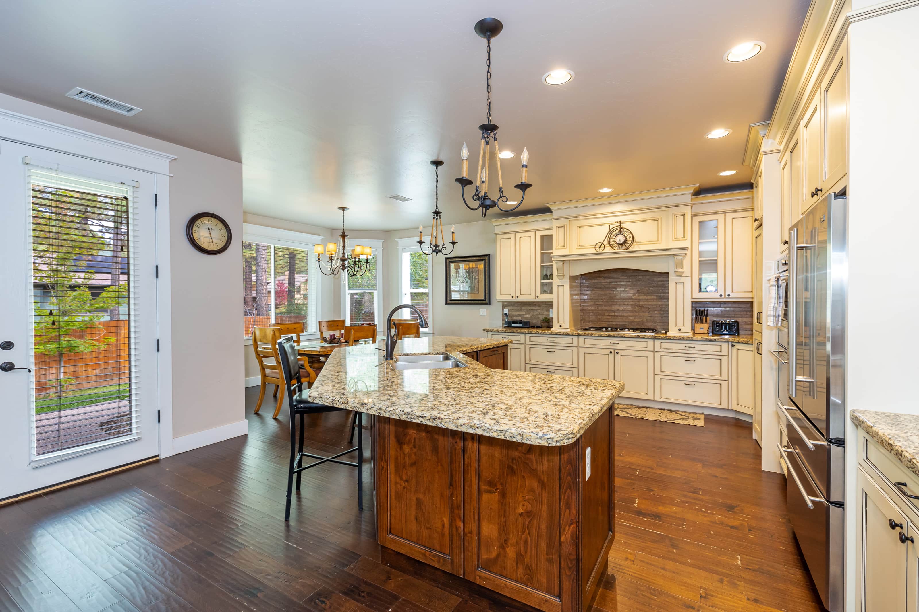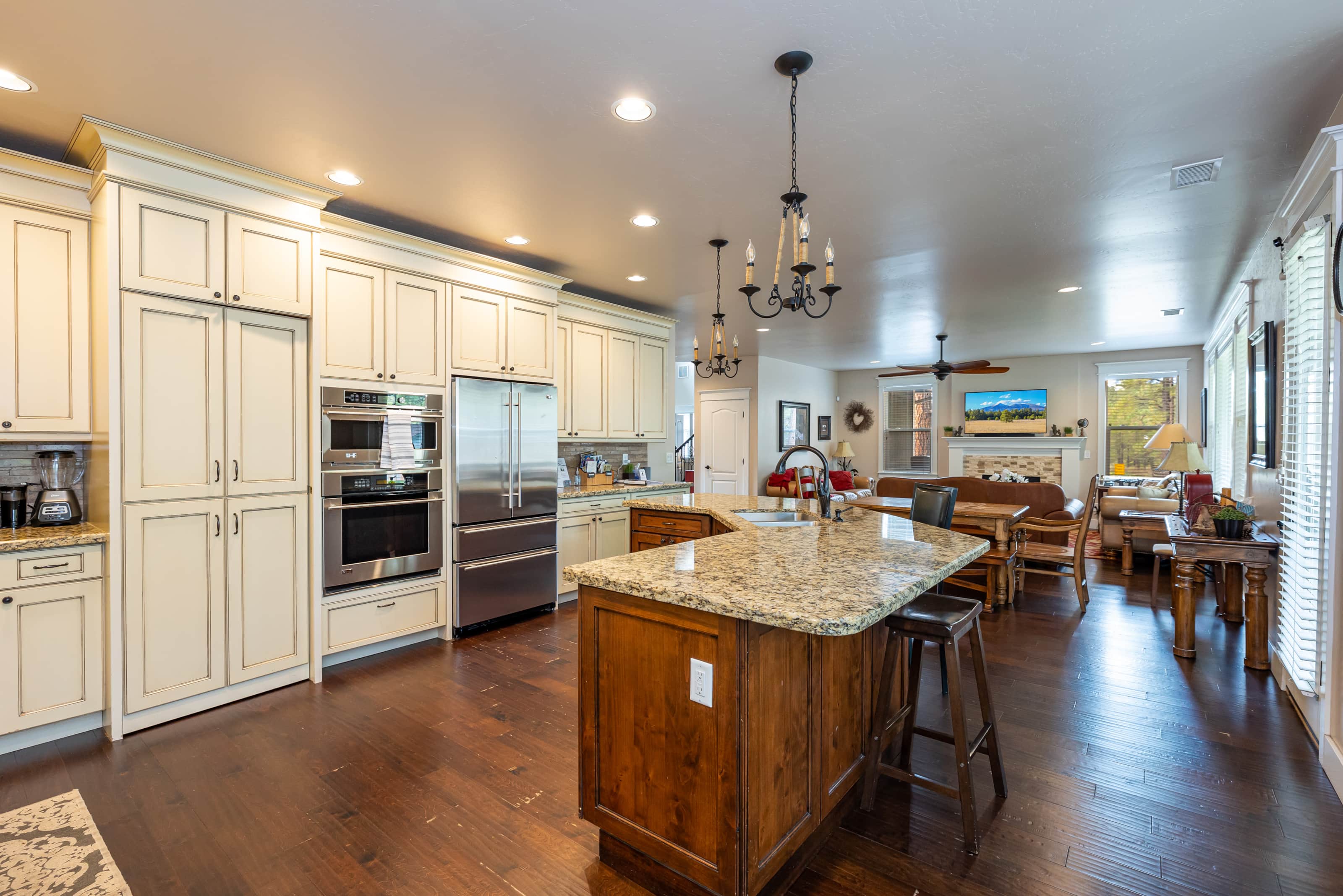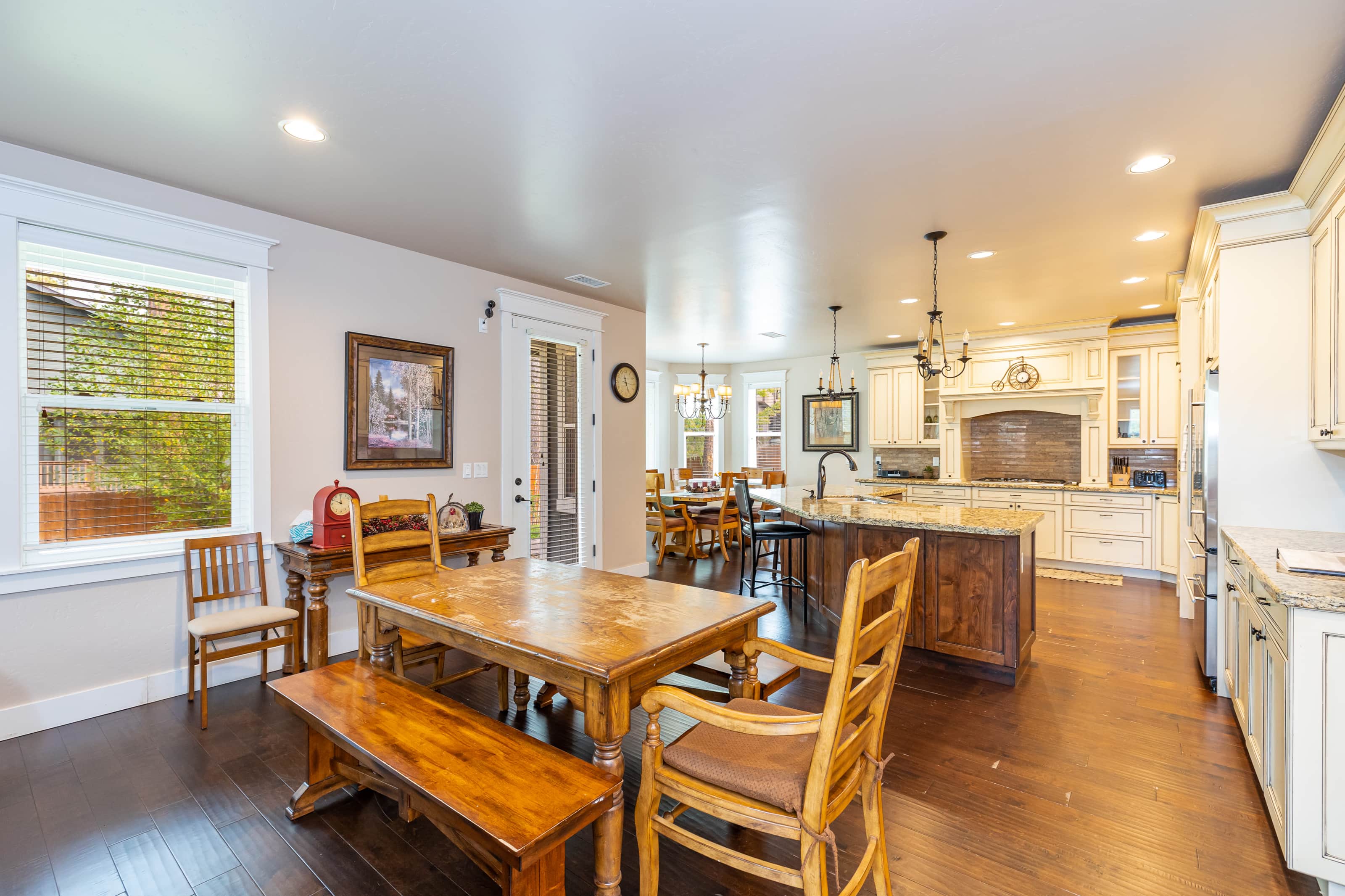 • Dining: Seating for 14+ across two dining tables and additional bar stools at the breakfast bar.