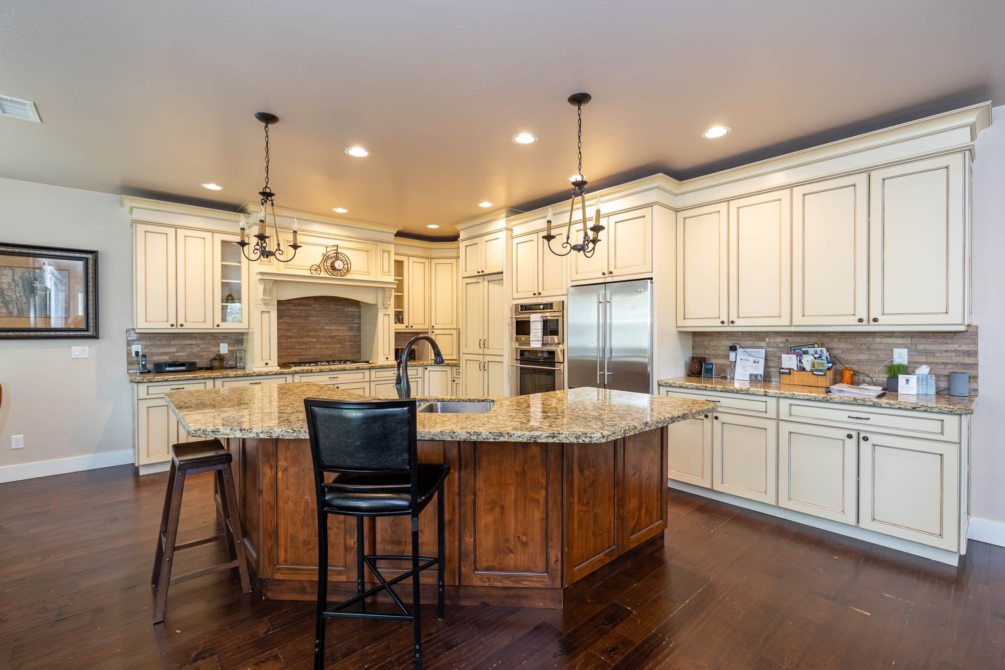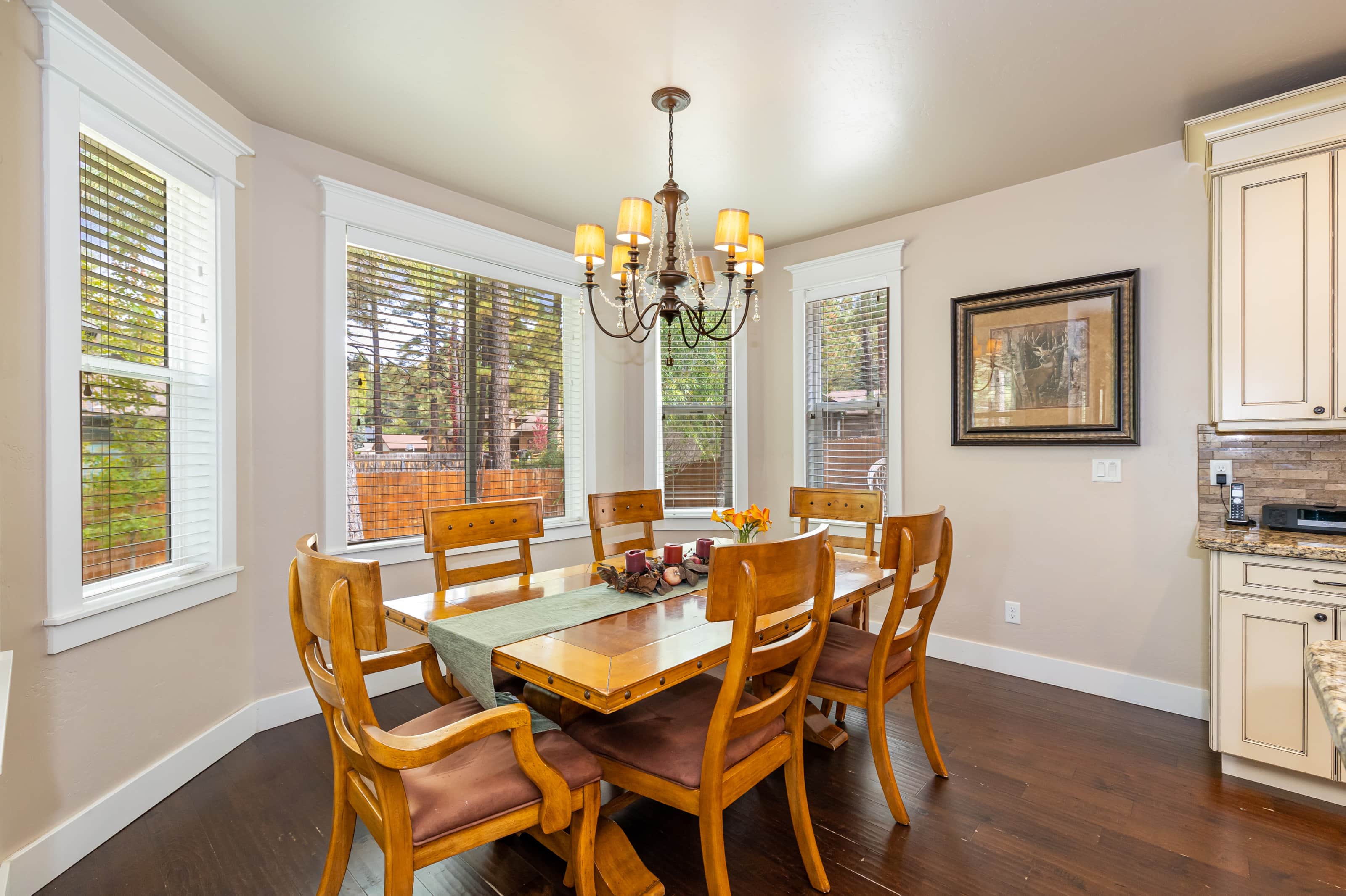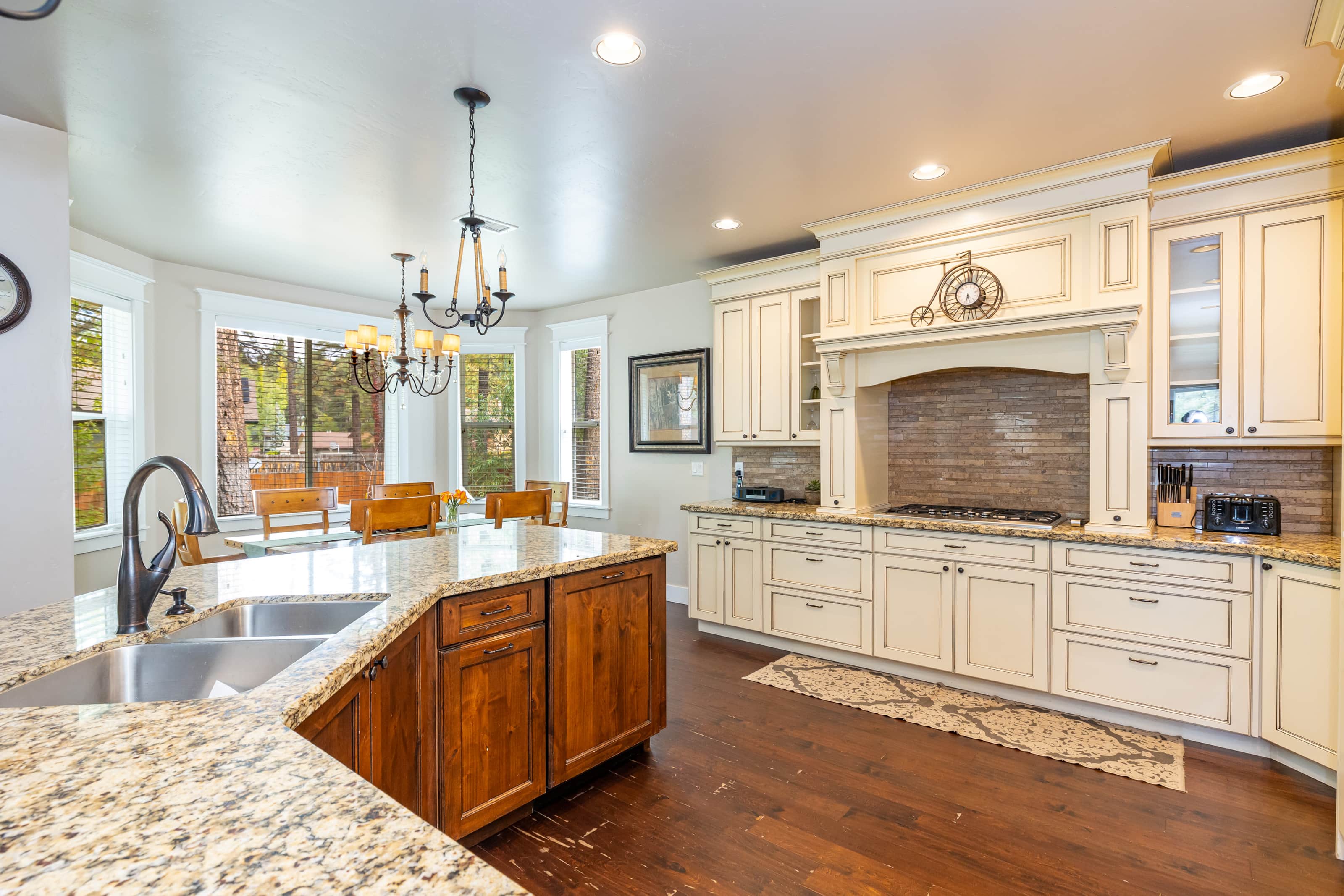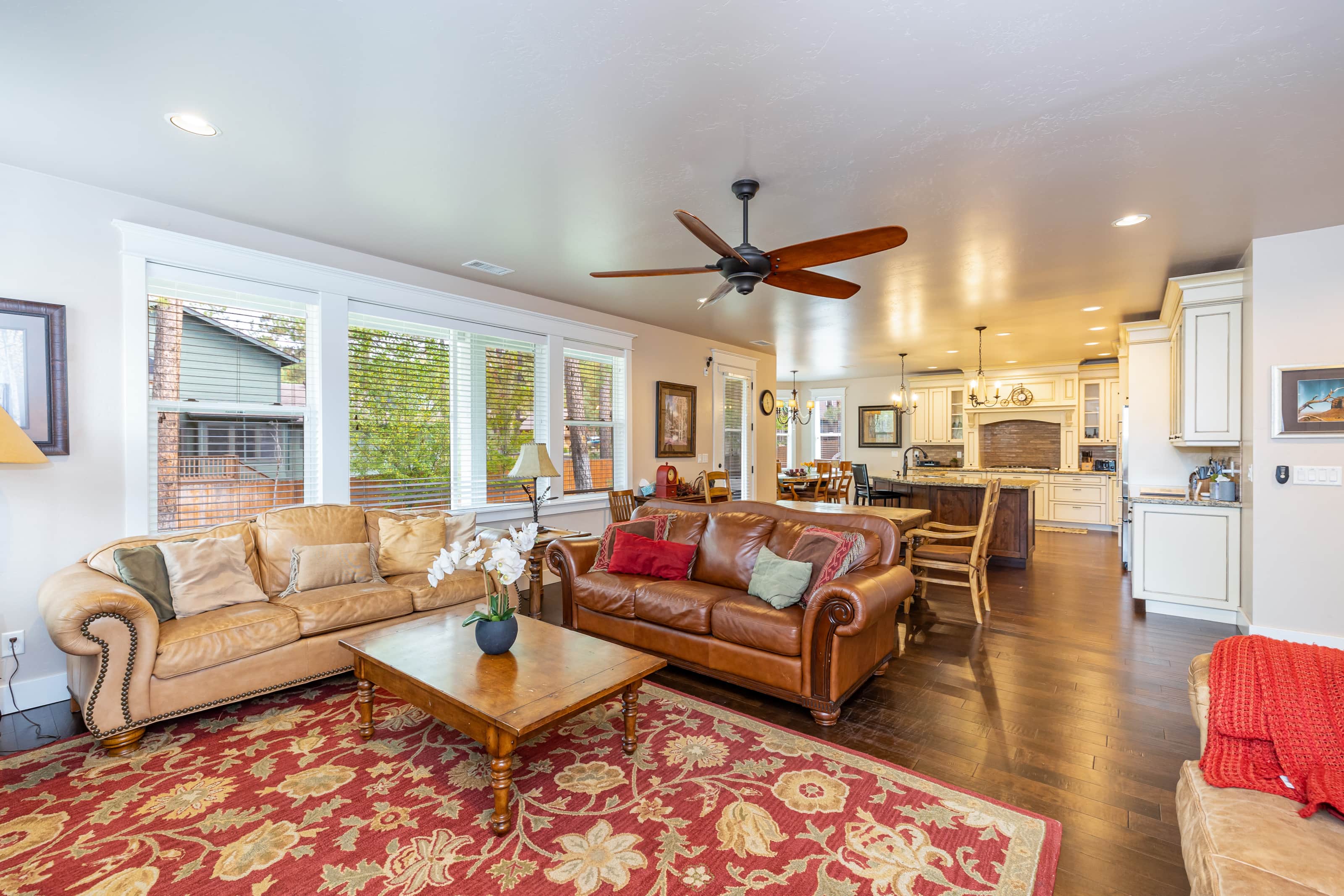 • Dining: Seating for 14+ across two dining tables and additional bar stools at the breakfast bar.