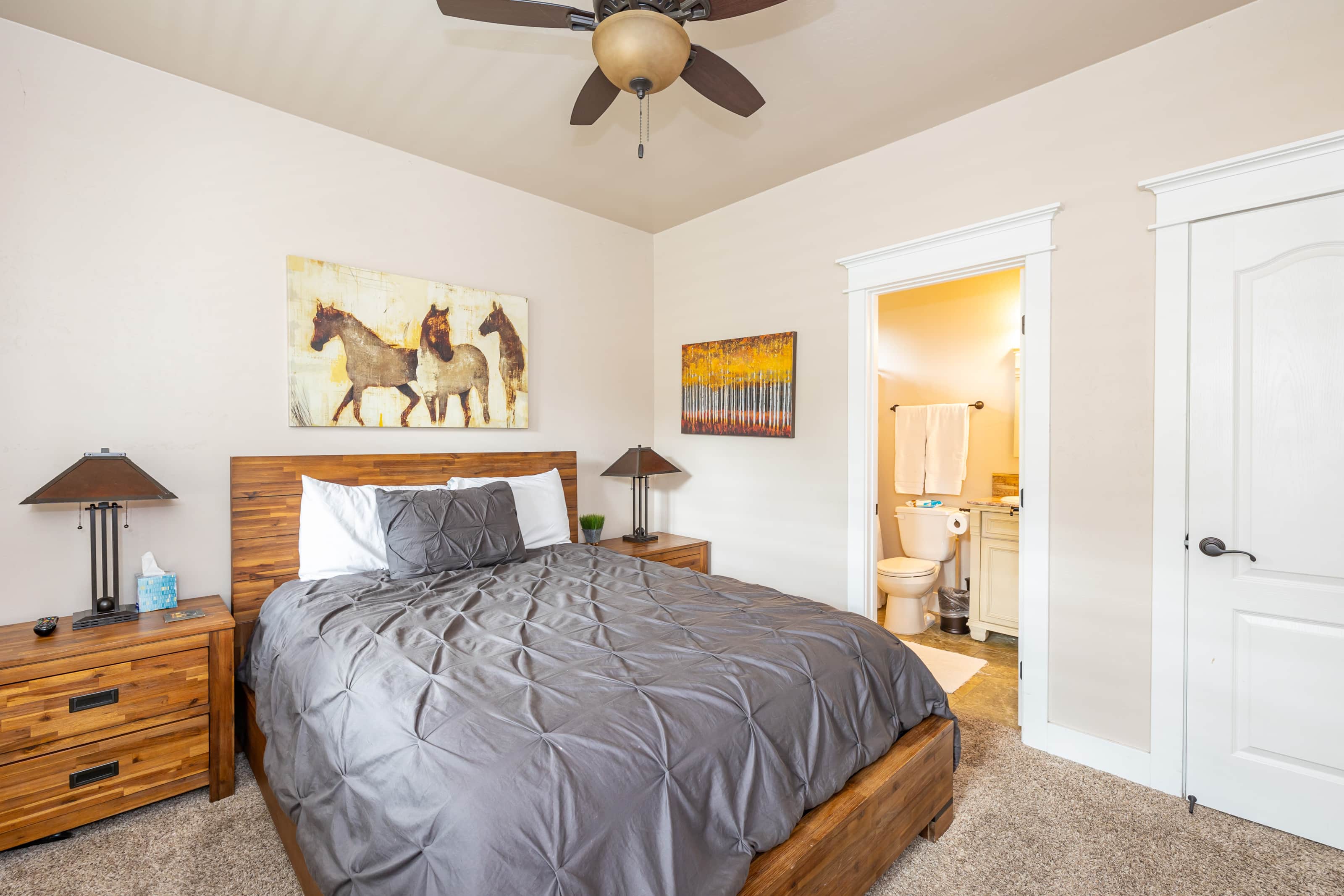 Bedroom 2: Queen bed with en-suite full bathroom and HDTV w/ TiVo.