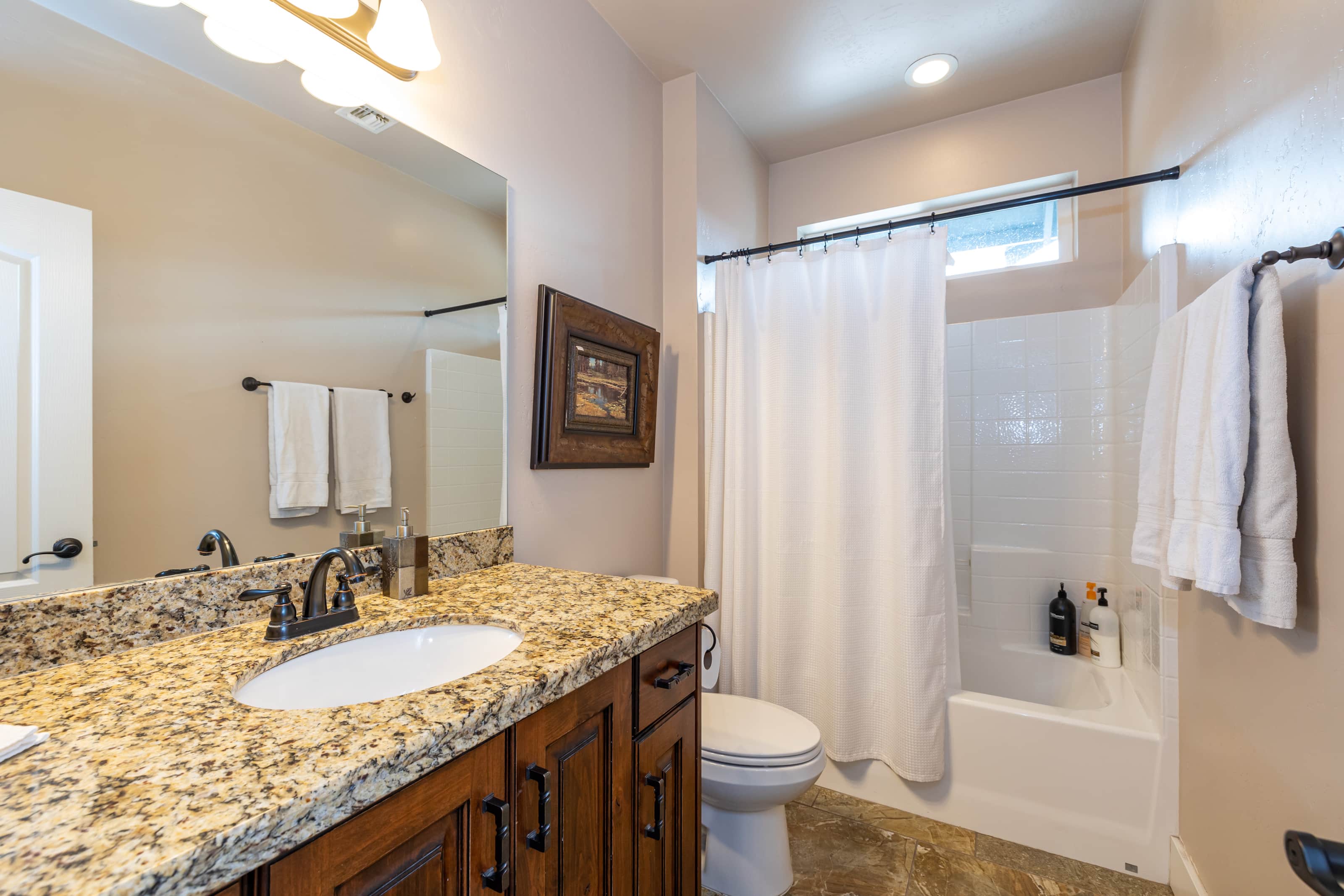 There is also a full bathroom located upstairs for guests to use along with an additional powder room downstairs.