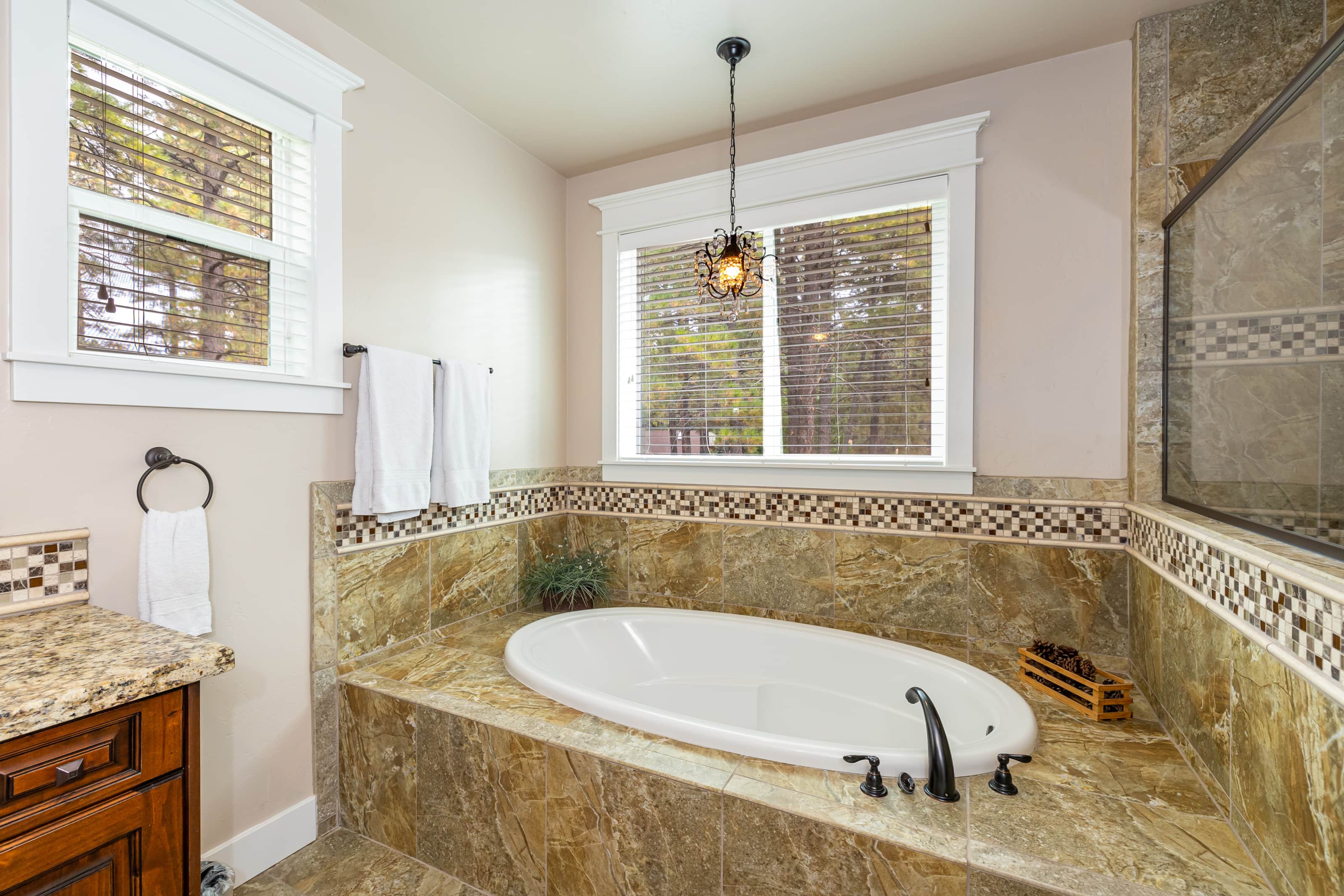 Bedroom 1: Master bedroom with king bed and large master bathroom suite with separate tub and shower. This room also has a large screen HDTV w/ TiVo.