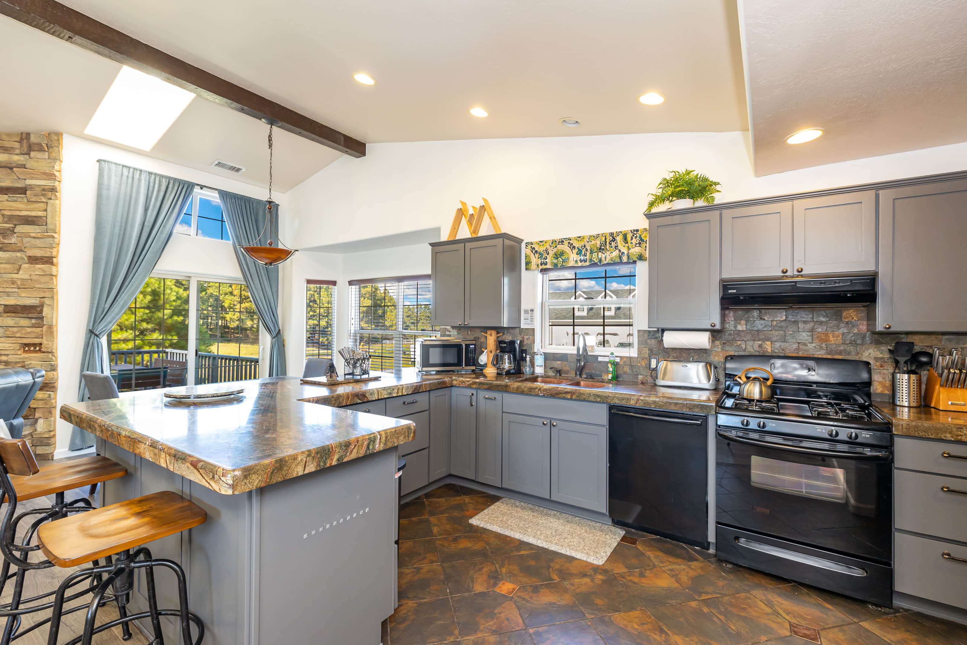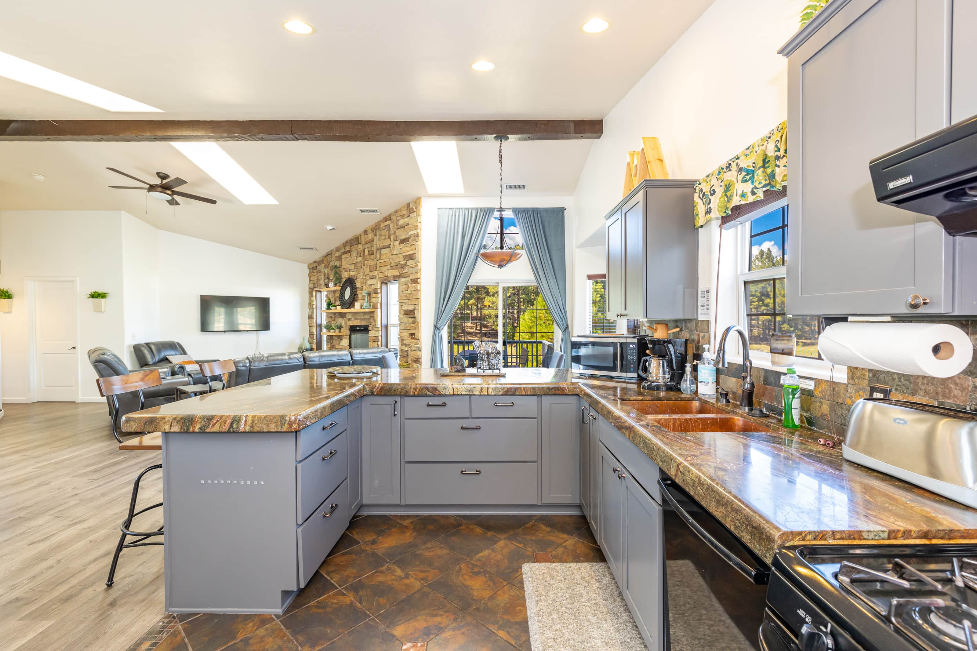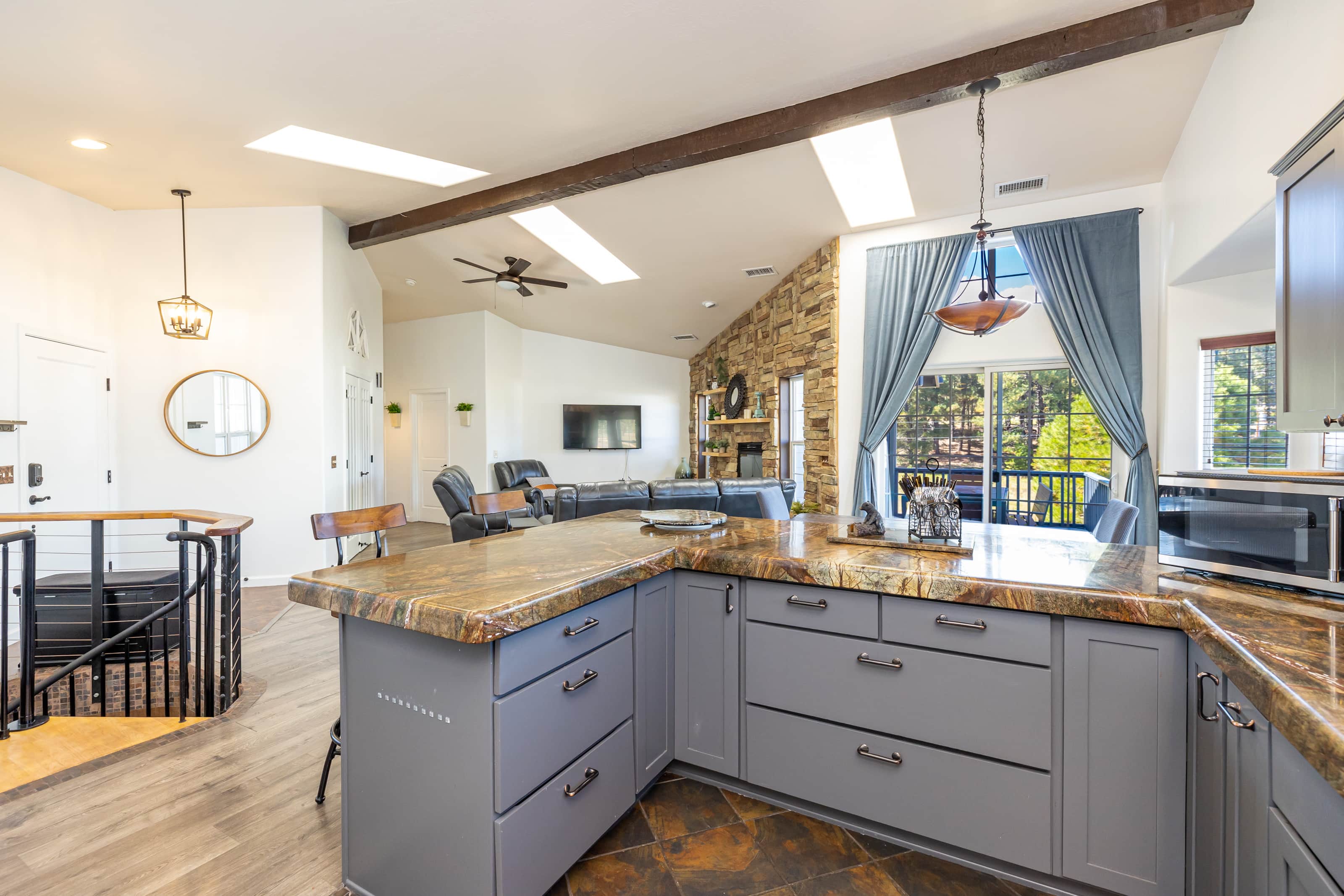 It was a great place to have our family reunion during our daughter's graduation from NAU. We were close enough to easily access campus yet far enough away to keep away from traffic. The home was easily accessible by young and elderly alike. It was very ample and allowed for everyone to gather together or spread out throughout the home. Our family was very comfortable and pleased with our stay here!