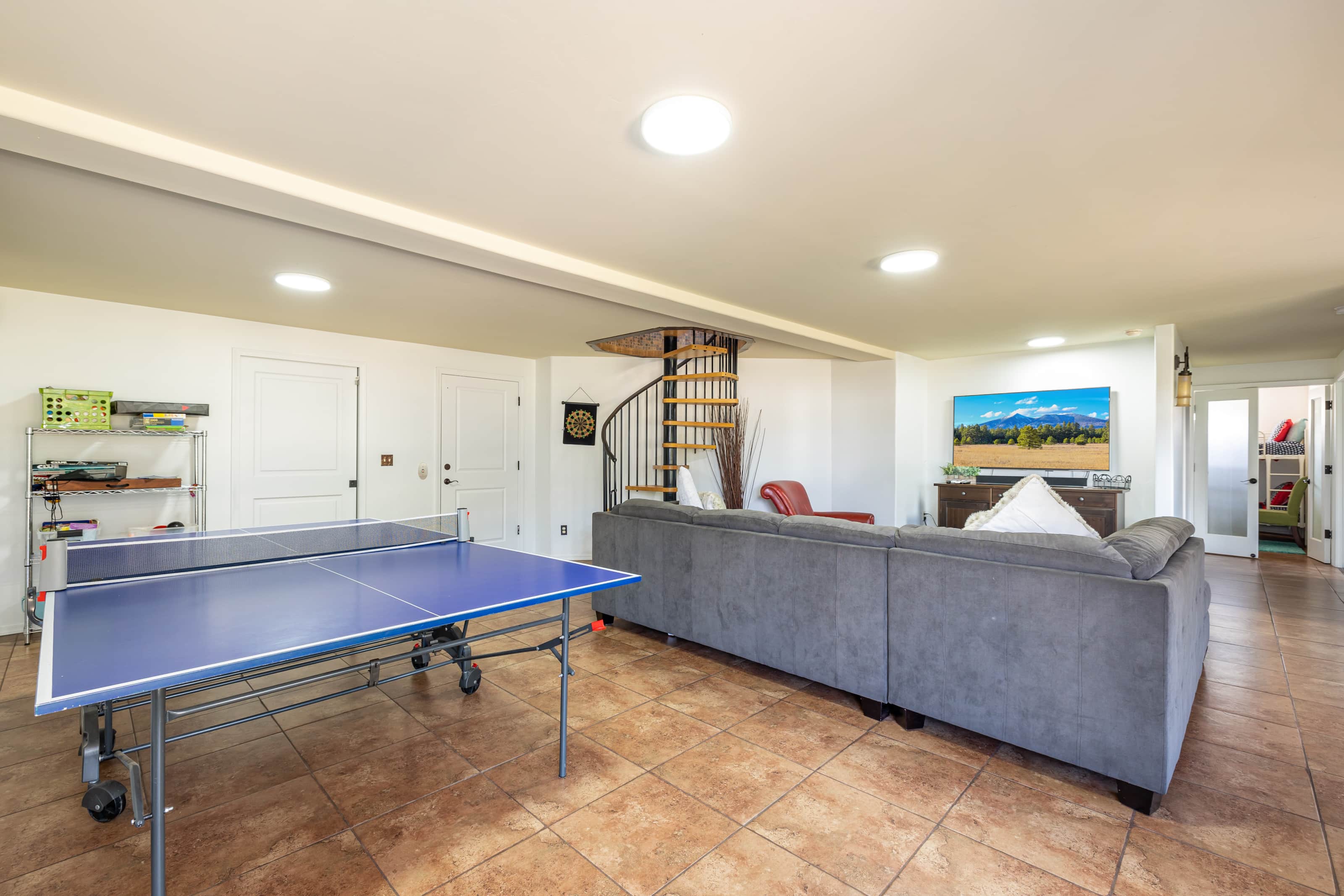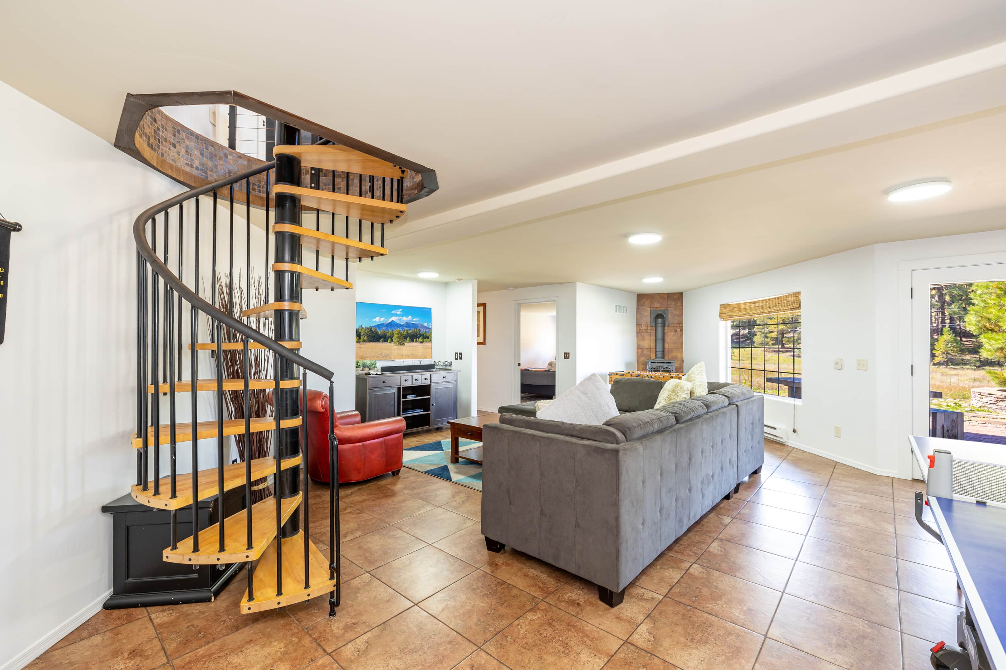 Looking to entertain yourselves? How about a Ping Pong Table, Foosball, and a mini dart board? In the winter, you can step outside into your own private sledding hill in the backyard next to the Ponderosa National Forest! When you want to head into town it's only 6 highway miles and you can explore all Flagstaff has to offer.