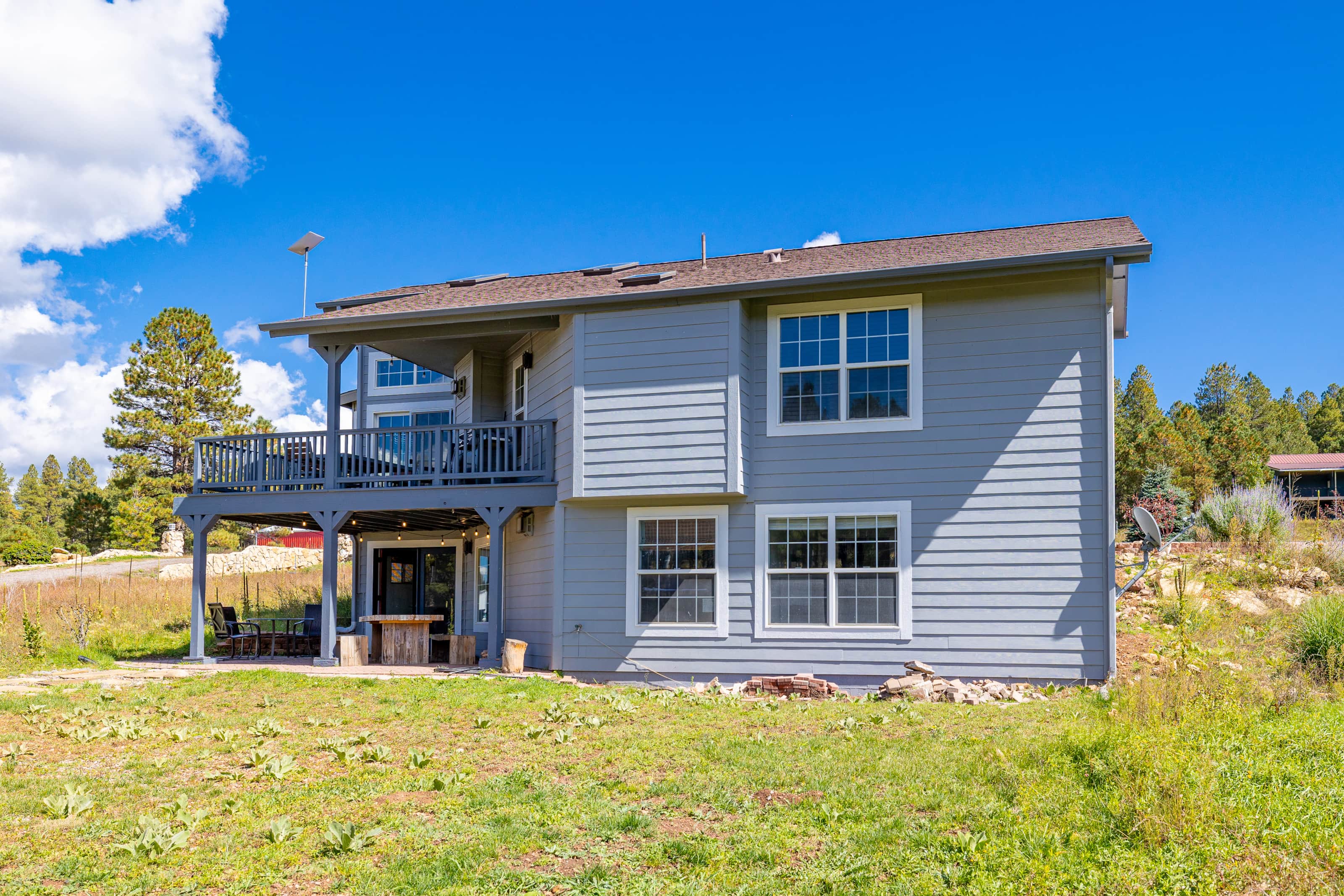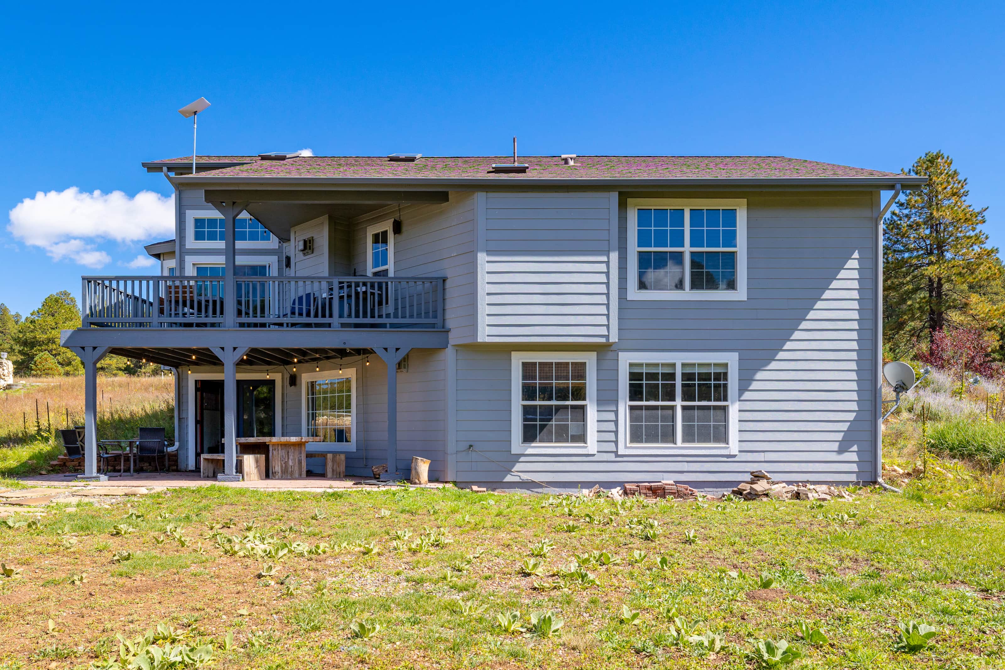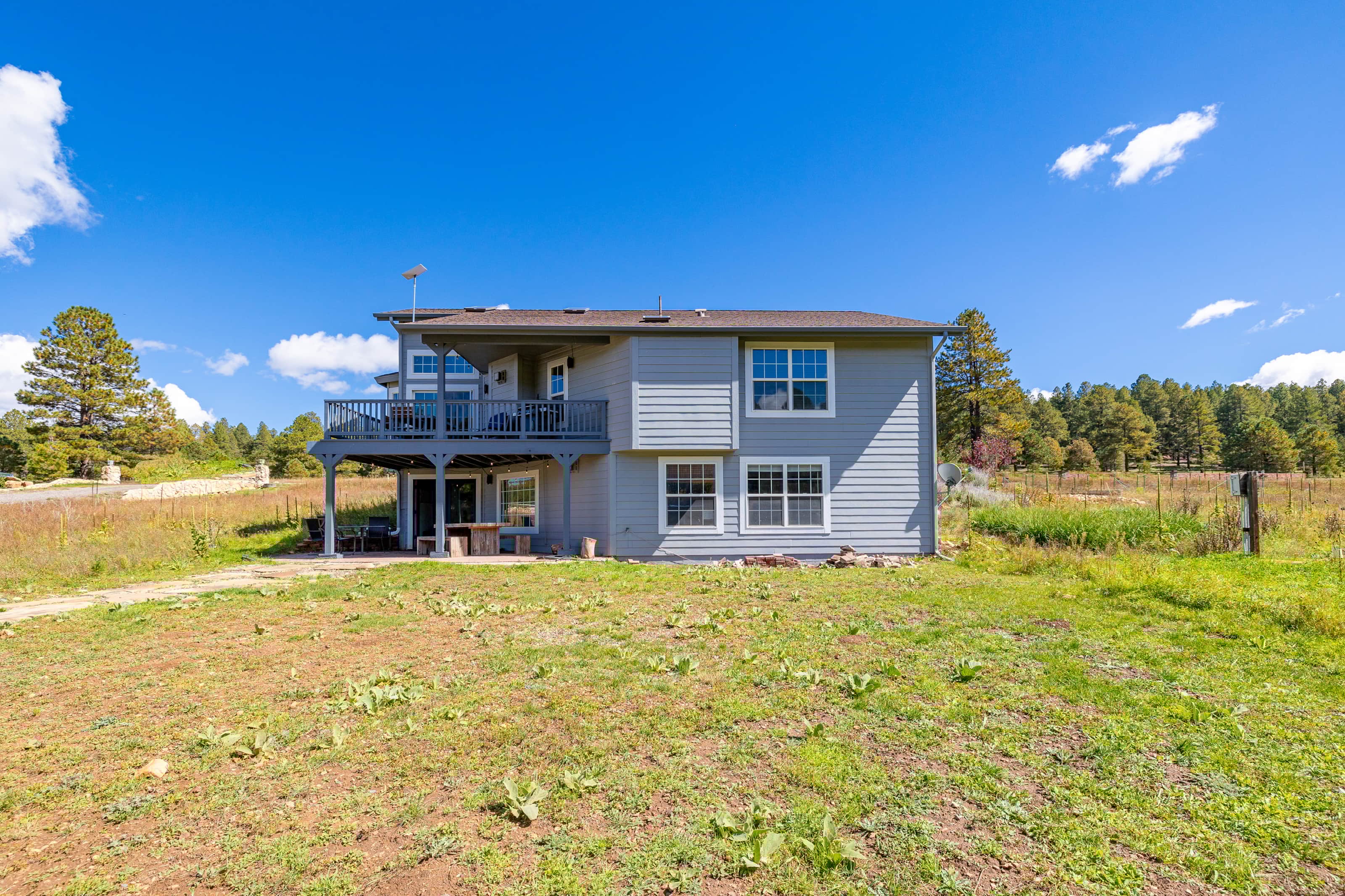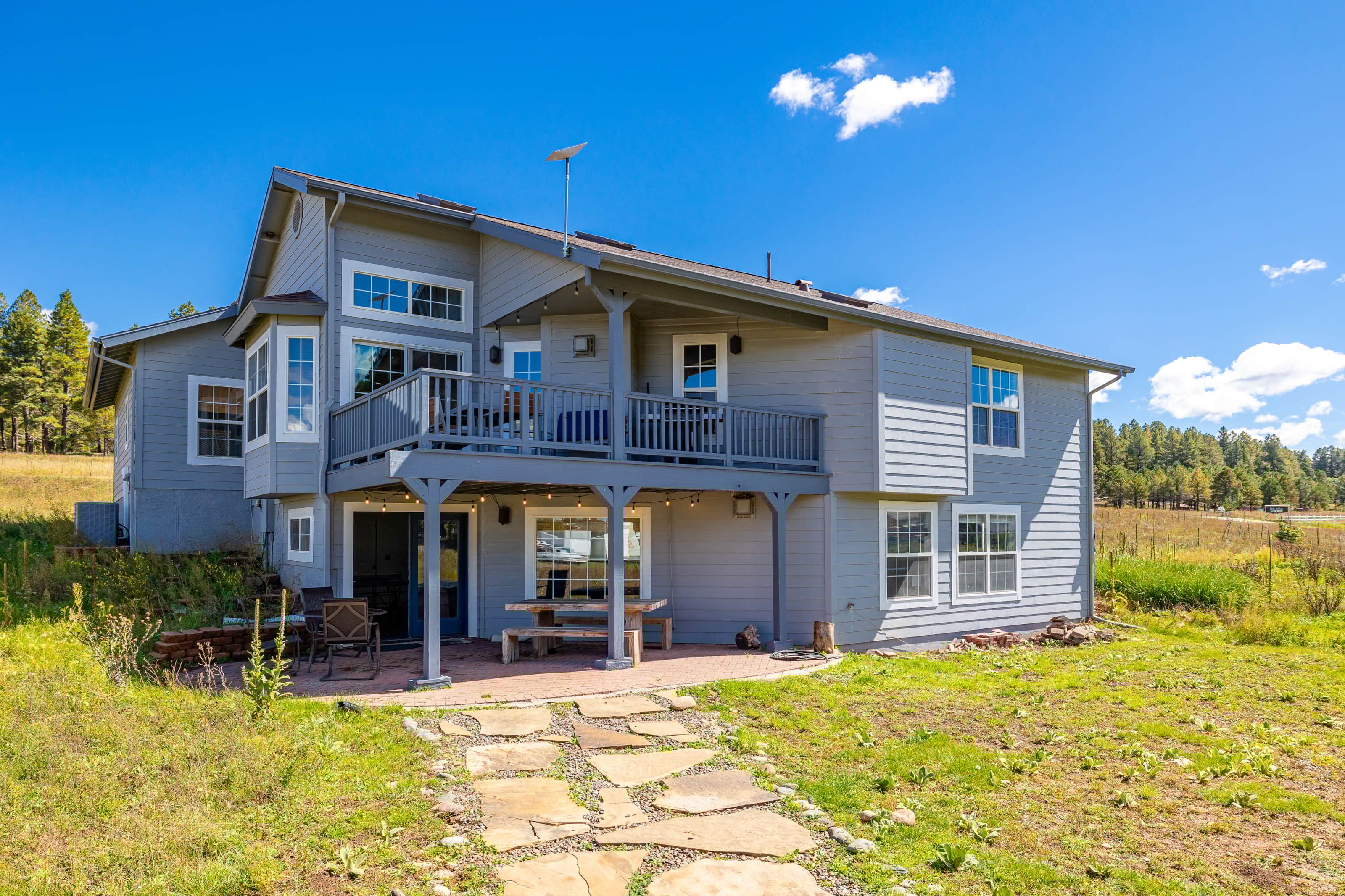 This large Flagstaff family fun cabin sitting on 2.5 acres backing the Ponderosa National Forest is perfect for a large family get away! This awesome cabin features a private elevator, ping pong, foosball, mini dart board, board games, outdoor fire pit and even a 50-amp EV car charger! This home hascentral air conditioning and fast StarLink internet!