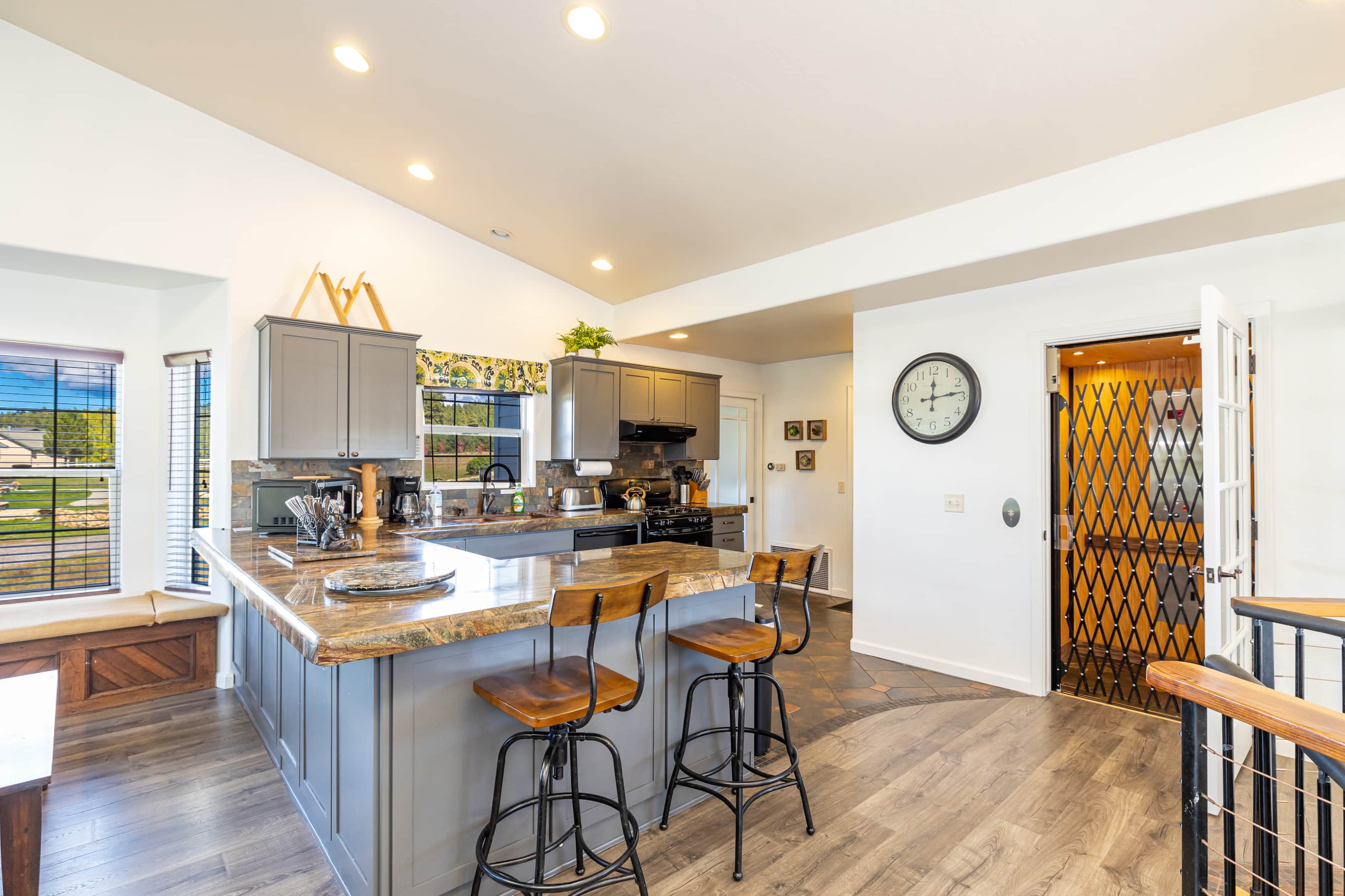 Cannot express enough how much we LOVED staying here for our wedding weekend. This place is such a hidden gem, but if you’re planning a wedding at Aldea Weddings in the Woods in the future, you need to book this gorgeous house for your bridal party. Not only did it comfortably hold all of us, but there was still room to entertain and so much gorgeous scenery. It was so convenient being so close to our wedding venue, especially the crazy morning of and night after. Plus, this place has an ELEVATOR! I loved that it’s ADA accessible (in the primary bedroom and with the elevator) but also the elevator was so fun and convenient for shuffling around items up and down the stairs. The hosts allowed us into the home a few hours early too which was such a nice touch so we could get unpacked and settled sooner. I can’t express enough how grateful we are to have found this place. It made our wedding weekend unforgettable. Wish we could have spent more time there!